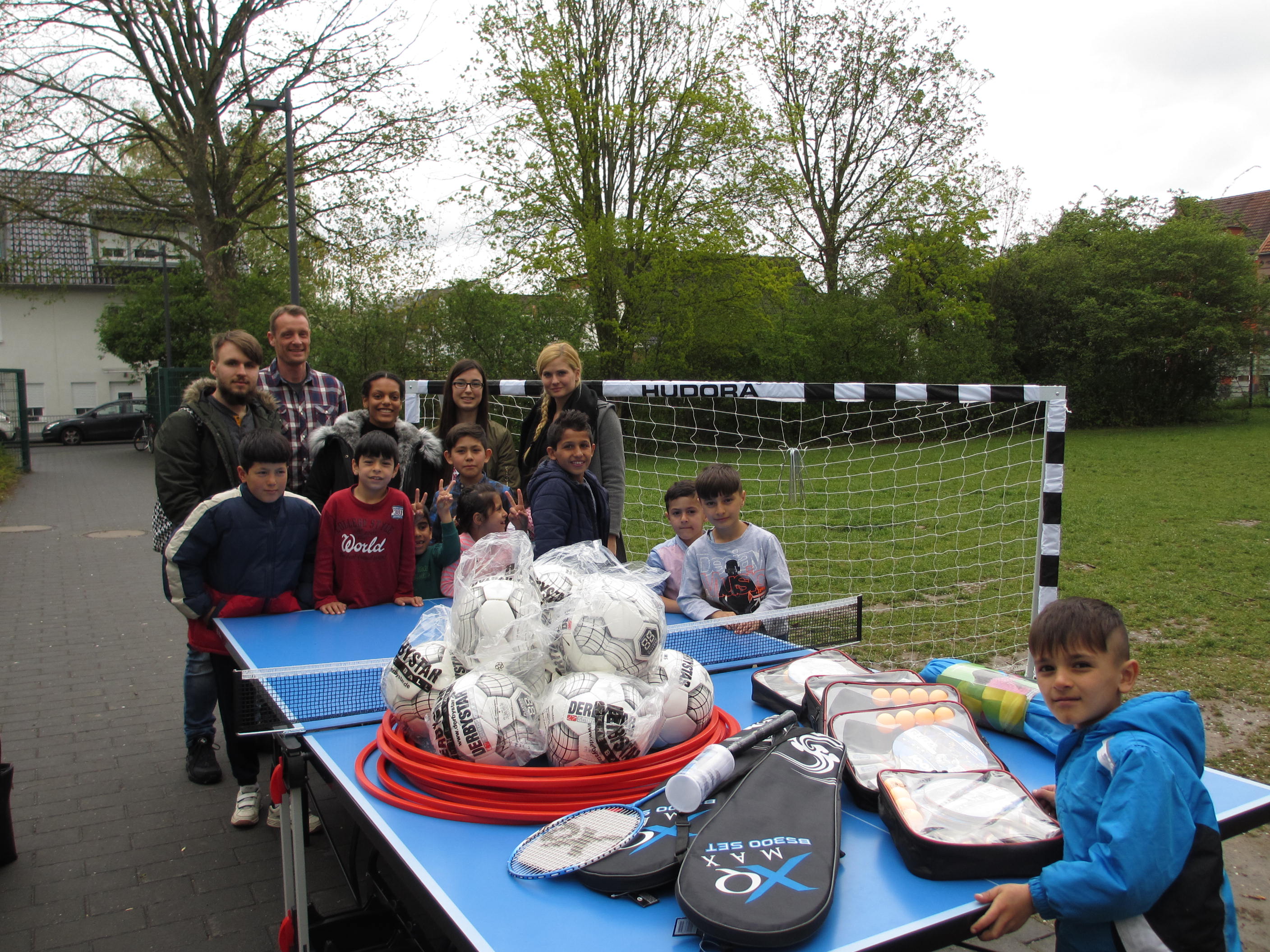 Eine Tischtennisplatte, reichlich Bälle, Badmintonausrüstungen und Tore für die Außenanlage konnten Dank einer Spende der Eichendorff-Realschule angeschafft werden.
