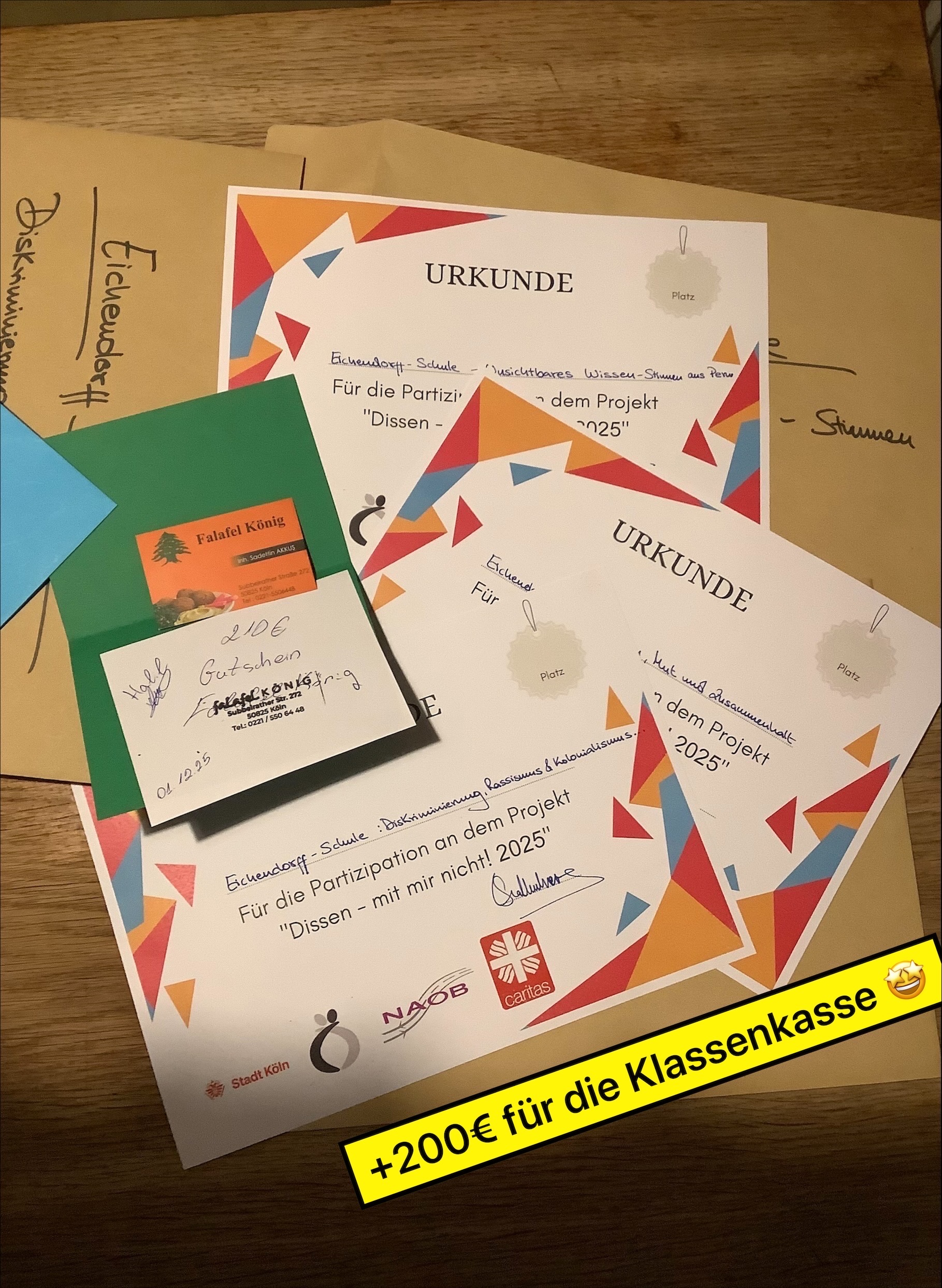 Letzte Woche durften wir an der großen Preisverleihung des Kreativwettbewerbs „DISSEN – MIT MIR NICHT!“ teilnehmen – und es war für uns ein echtes Highlight! Mit beeindruckenden Bildern, bewegenden Texten, starken Videos und kreativen Musikstücken setzten Jugendliche aus Köln ein kraftvolles Zeichen gegen Rassismus und Diskriminierung jeder Art.